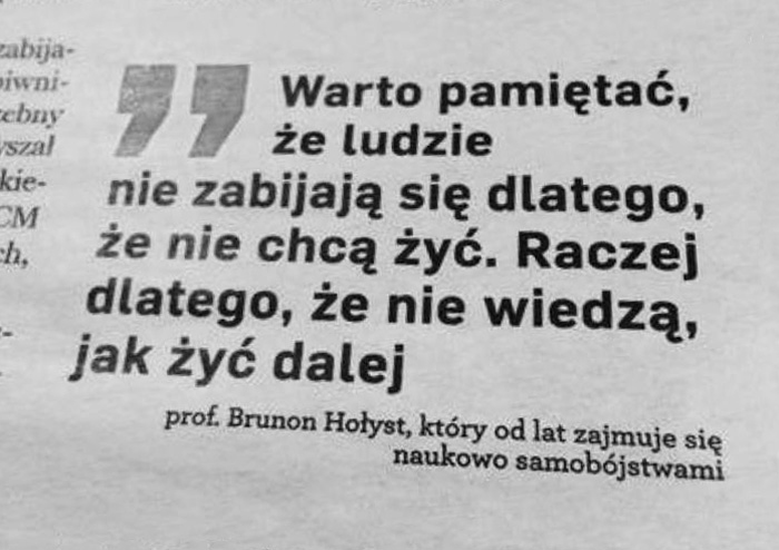 "Jak dostaniesz łomot od razu chce ci się żyć. W głębi serca czułem, że można wypiąć się na system ale ciemne podskórne siły wciąż trwają — te uważane czasem za przesąd jak duchy potępionych, czarne koty, kapelusze na łóżku, psy i krzywe spojrzenia. Ze spokojem uznałem, że pierwszy raz w życiu wiem co się zaraz stanie."